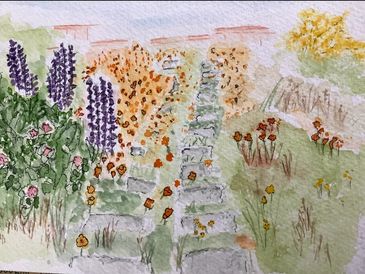 Running her hands through her hair she leapt across the room, pulled a chair to the window and climbed up. Spiky red hair glowed in the brightening sunlight as she stared out and quietly tried each of the words. The large orange cat carpeting the window sill looked up and listened. Quiet enveloped the room until the chirps of birds scattering seeds invaded the silence. Chickadees, nuthatches and finches fought noisily for the feast of sunflower seeds which her mother had set out earlier. Remembering the list of chores she jumped from the chair and hurriedly started deftly peeling carrots and potatoes and filling pots of vegetables for Sunday lunch. Snatching and closing the notebook, she stacked it on top of the others. Clearly marked on the cover it said: FUTURE PLANS. This was written in lime green and covered in paw prints!